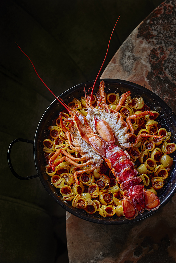 Por original, destaca la boloñesa de marisco con bogavante de la Ría –pasta lumaconi rellena de boloñesa de marisco y sabayón de mariscos a la que puede añadirse un extra de caviar–; por contundente, el arroz con jarrete de cordero asado –con mayonesa de ajo fermentado– y por sabrosos, los fideos con carabineros –o, mejor dicho, los carabineros con fideos–, con pulpo, su socarrat y un toque de especias mexicanas.