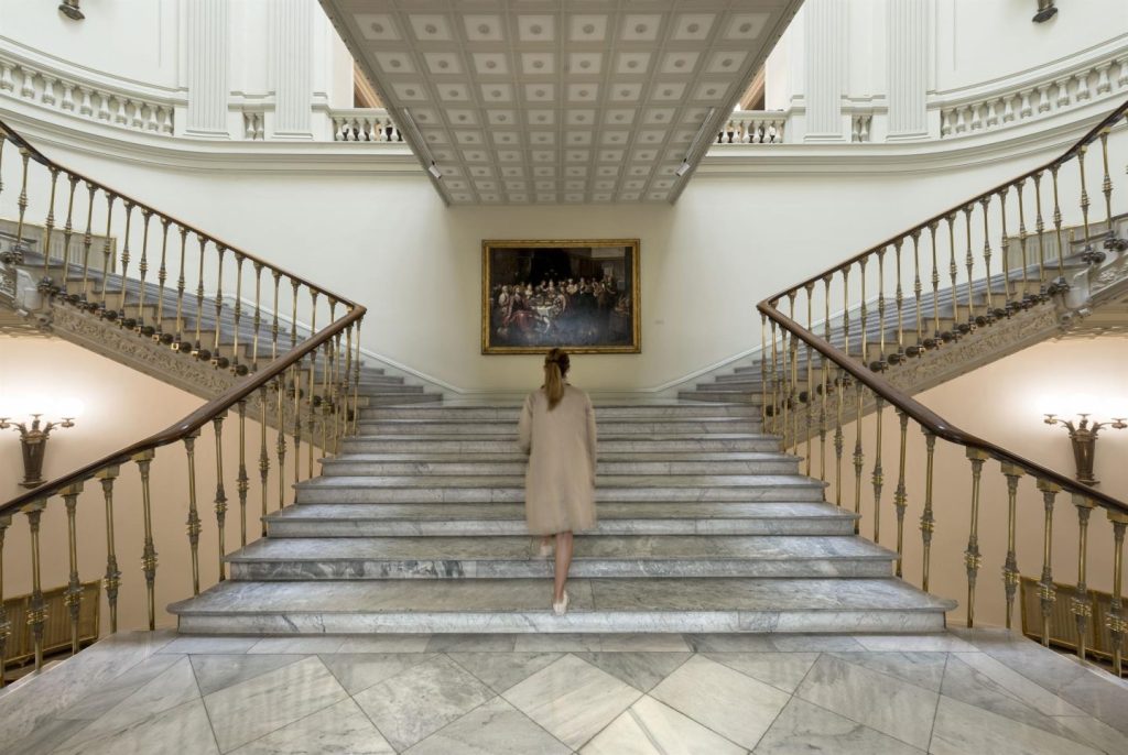 El programa ‘Puertas Abiertas’ no solo exhibe espacios arquitectónicos sino también una selección de obras de arte que comprenden el núcleo de su colección artística. Los visitantes tendrán el privilegio de observar retratos emblemáticos como los realizados por Francisco de Goya de los gobernadores del Banco Nacional de San Carlos, considerado el primer antecesor del Banco de España, así como una fotografía de Annie Leibovitz del rey Felipe VI y la reina Letizia, ubicada en la Sala del Consejo de Gobierno.