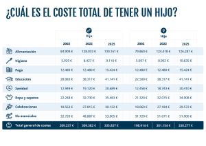 El primer año de vida de un bebé ya representa un esfuerzo económico enorme: hasta 11.586 euros, según Raisin, lo que equivale al 38 % del salario anual medio masculino y al 45 % del femenino. Las etapas posteriores tampoco alivian demasiado la carga. La adolescencia, de los 12 a los 18 años, es la más costosa, con un gasto acumulado medio de más de 100.000 euros. Luego llega la etapa universitaria o de formación superior, que también conlleva gastos elevados en alojamiento, manutención, transporte o material académico.