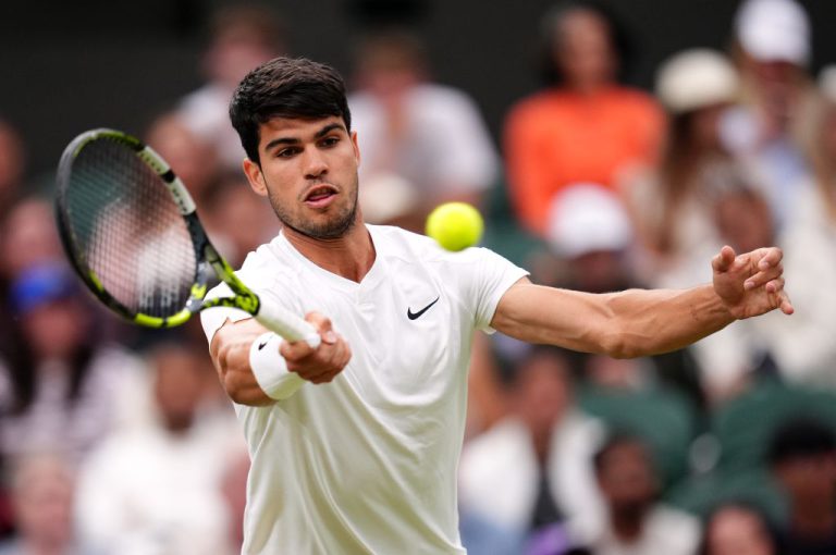 El tenista español Carlos Alcaraz avanzó este domingo a los cuartos de final de Wimbledon, tercer ‘Grand Slam’ de la temporada y sobre la superficie de hierba, tras imponerse en cuatro sets (6-3, 6-4, 1-6 y 7-5) al francés Ugo Humbert, número 16 del mundo, en un duelo de tres horas en el que aguantó los arreones del rival para seguir en la defensa del título. El número tres del mundo fue muy superior a su rival en las dos primeras mangas de este partido de octavos de final, sobre todo en el segundo parcial, desplegando un tenis muy completo. Pero Humbert se rebeló en el tercero y le endosó un buen correctivo que, sin embargo, hizo crecer al español, que terminó cerrando el encuentro en el cuarto set para avanzar a cuartos, donde ya espera el ganador del duelo entre el estadounidense Tommy Paul y el español Roberto Bautista. Alcaraz entró con buen ritmo en el partido, con mucha consistencia con su juego y rompiendo, en el quinto juego, el servicio de su rival, casi en blanco, para colocar el 3-2. Una ventaja de un ‘break’ que mantendría hasta el noveno juego, cuando no espero a su turno de saque para cerrar la primera manga. Así, convirtió el 6-3 del primer set en la segunda oportunidad disponible, en apenas 40 minutos de juego. La tarea pendiente del murciano era su saque, incapaz de hacer ningún ‘ace’ en esa manga inicial –67 por ciento de primeros saques y 11/18 e puntos con el primer servicio–. Aunque su solidez le hizo ser más preciso que Humbert, que cometió en el primer set 14 errores no forzados, por los 8 que lamentó el murciano. La segunda manga arrancó mucho más igualada y con el francés proponiendo mucha más batalla, para exigir al…