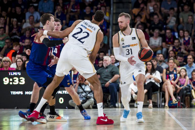 El Real Madrid jugará la final de la Liga Endesa tras ganar este domingo al Barça (92-95) en el Palau Blaugrana, en el tercer partido de una serie de semifinales del Playoff que estuvo más igualado que los dos jugados en la capital española pero que tuvo el mismo resultado, con un Real Madrid que se fue a la lucha por el título por la vía rápida y sin pagar peaje en Barcelona. Intentaba el Barça obligar al Real Madrid a quedarse más tiempo en la capital catalana, pero los blancos tenían prisa por meterse en la final. ¿El premio? Descansar tras la Final 4 de la Euroliga y ver desde la televisión si Unicaja o UCAM Murcia era su rival en la final. Y lo lograron gracias a un gran partido de Facundo Campazzo, que se puso a su equipo a la espalda. Con 90-92 en el marcador y a falta de 22 segundos para el final, el ‘Facu’ se metió entre tris rivales, escabulléndose de todos como si fuera un ratón entre varios gatos incapaces de neutralizarle. Y anotó y ahí puso punto final a un partido que no quería acabar, con un último minuto que se hizo eterno, pero en el que los blancos tenían todo a su favor con un 92-95 con la misma fórmula que en el WiZink Center; marcador alto y el Real Madrid en modo martillo. Los blaugranas, que llegaron vivos al descanso (45-49) pese a perder de 13 en la primera parte, pudieron darle la vuelta al partido en el tercer periodo, que también fue suyo (31-23) y con un cambio mental que propició el giro de guión. Si hasta entonces el Real Madrid llevaba la voz cantante, con un juego firme, el Barça fue a más para desde el triple y…