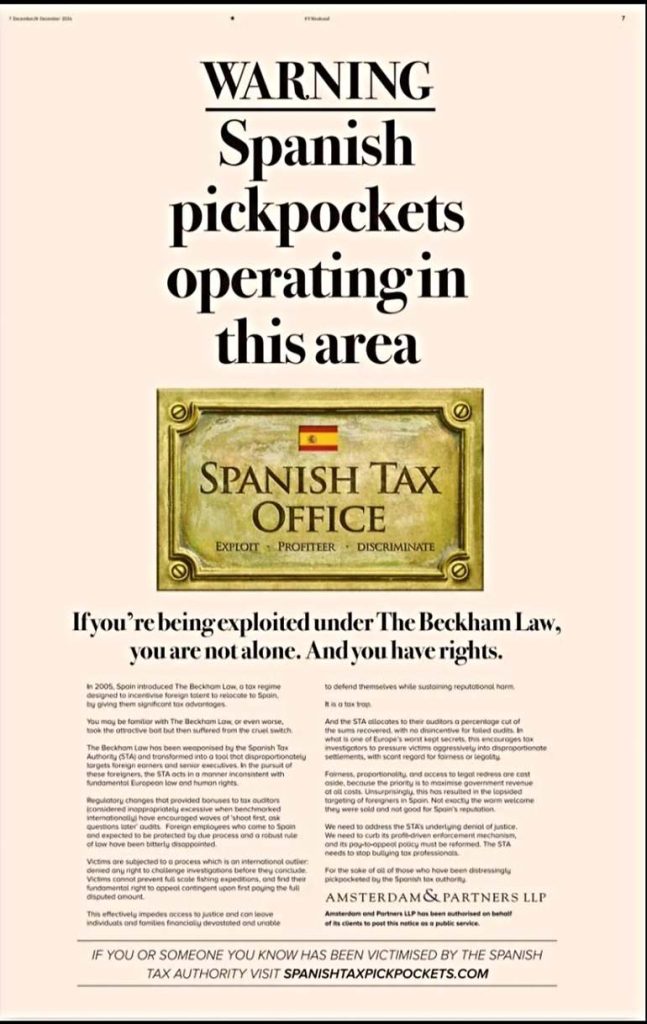 El despacho británico Amsterdam & Partners LLP ha desatado una tormenta al presentar un informe demoledor contra la Agencia Tributaria española (AEAT), bajo el título Hacienda contra el Pueblo: España y la Ley Beckham. En él, denuncia presuntos abusos sistemáticos, amenazas, e inspecciones arbitrarias contra contribuyentes acogidos al régimen especial.