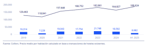 Este sesgo tiene impacto directo en el precio medio por habitación, que marca un nuevo máximo en 188.624 €. La cifra representa un incremento del 12 % respecto al promedio del periodo post-COVID y responde tanto a la concentración en activos de alta gama como a la creciente escasez de producto prime en ubicaciones urbanas y vacacionales consolidadas.