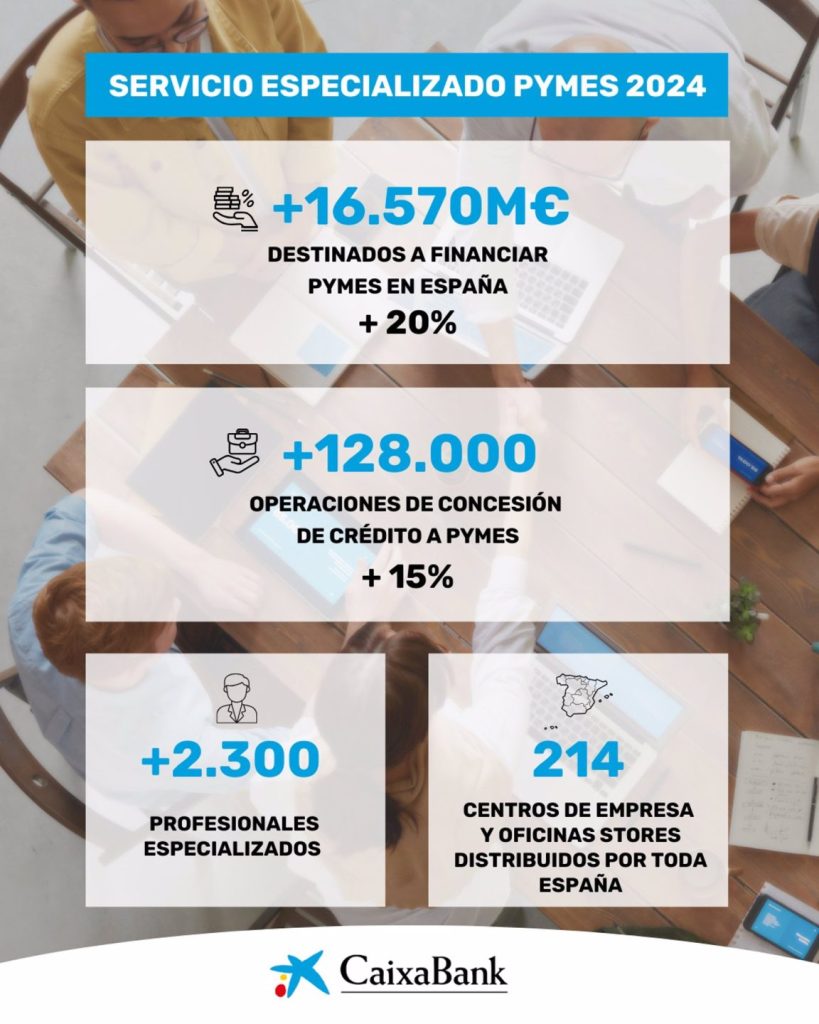 CaixaBank prestó 16.570 millones a pymes en España en 2024, un aumento del 20%.