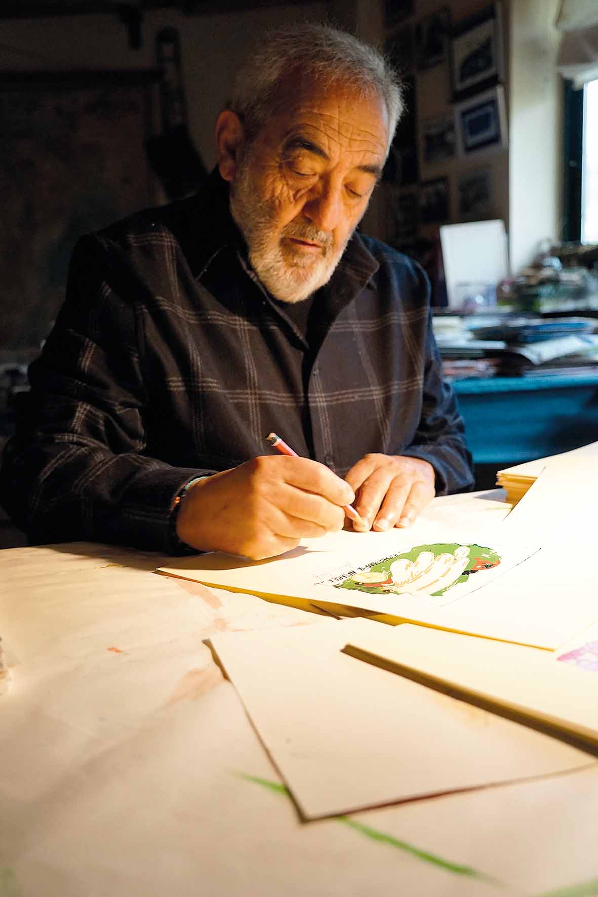 Numerosas y variadas ilustraciones sobre papel que en algunas ocasiones son destinadas a carteles y portadas e ilustraciones de libros de poetas y escritores. Cuando he participado en el proceso total de la edición de libros, sobre todo en los artísticos de gran formato con grabados o serigráficos, el proceso es como el del escultor.