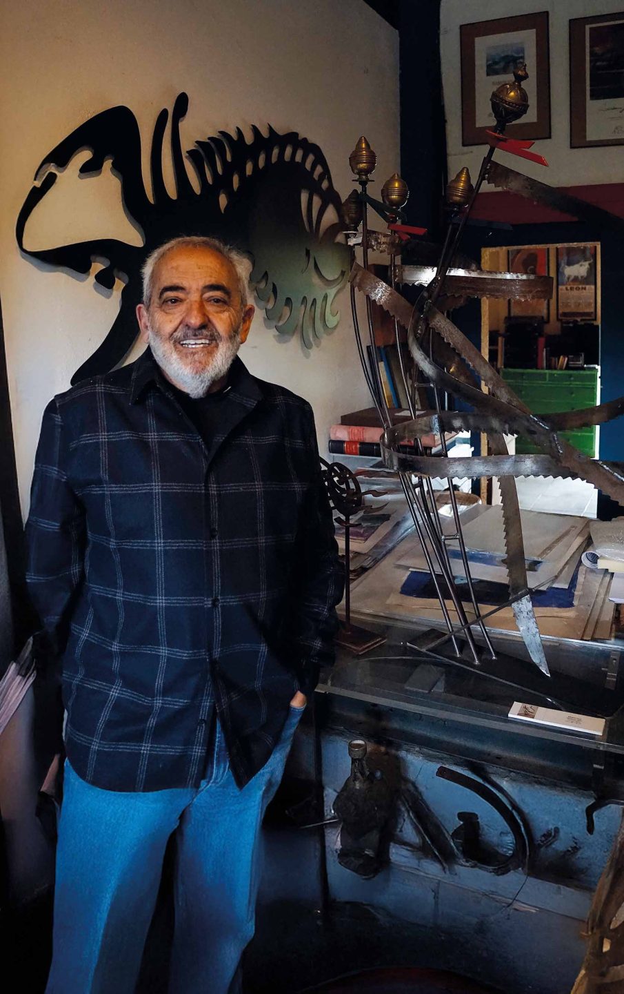 Desde niño, disfrutaba creando maquetas y dibujando. Mi primera “obra mural” fue un tren en las paredes de casa, lo que llevó a mis padres a inscribirme en clases de dibujo y pintura. Destacaba en concursos escolares y pintaba los Belenes navideños. Empecé en la escultura con madera del taller familiar, creando formas geométricas y orgánicas, y luego exploré la forja y soldadura, incorporando hierro y color rojo en mis primeras obras.