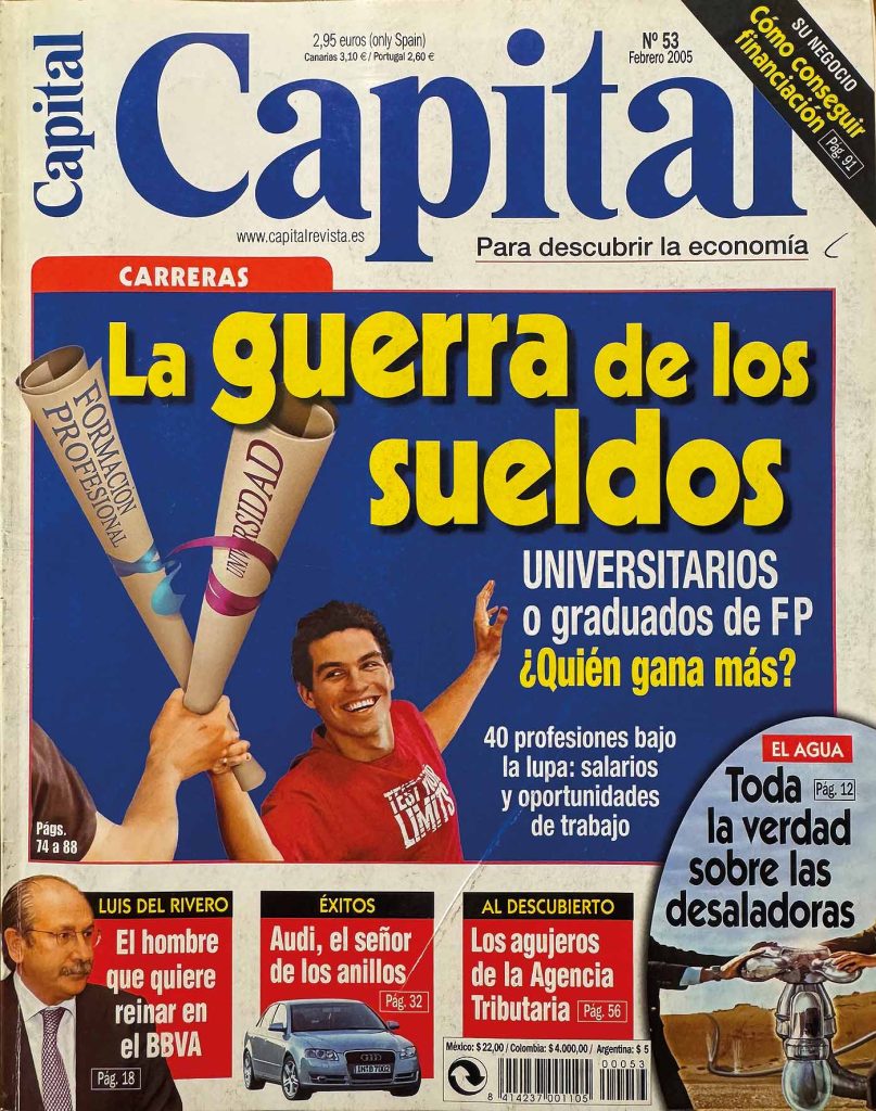 En la misma línea didáctica, la revista destacó en el segundo mes de 2005 una de las claves para elegir nivel formativo: concretamente, las diferencias salariales existentes entre los universitarios y los graduados de formación profesional.
