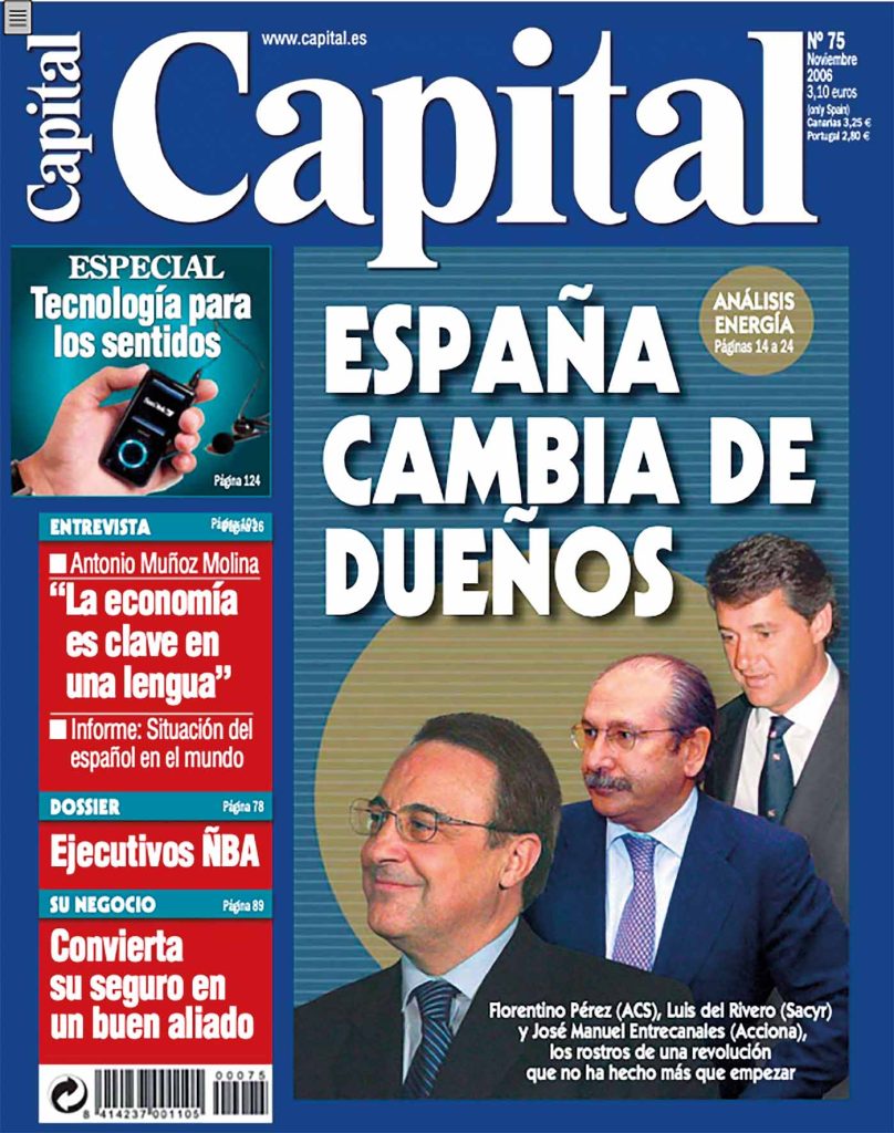 En plena época de la burbuja inmobiliaria, la revista publicó en portada un reportaje sobre los que denominó los nuevos ‘dueños’ de España: Florentino Pérez (presidente de ACS), Luis del Rivero (presidente de Sacyr) y José Manuel Entrecanales (presidente de Acciona). Hoy, dos de ellos siguen teniendo un peso muy relevante en el empresariado nacional.