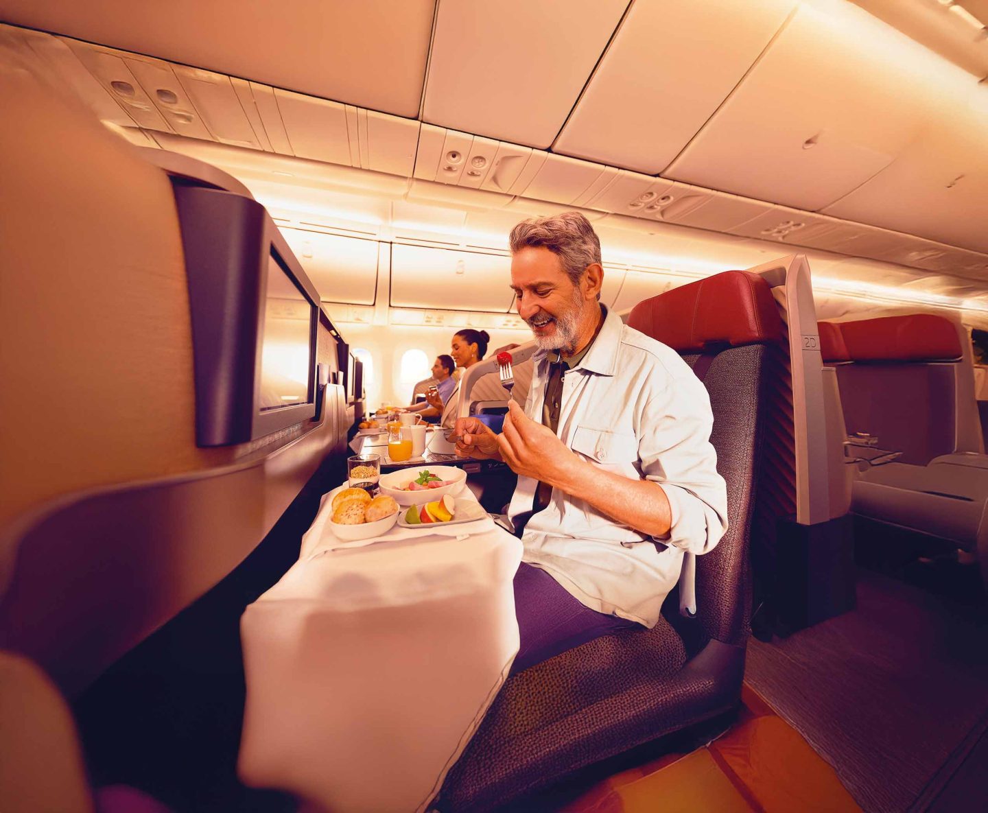 • Premium Business: asientos reclinables en 180°, acceso directo al pasillo, servicio gastronómico de primer nivel y amenity kits sostenibles