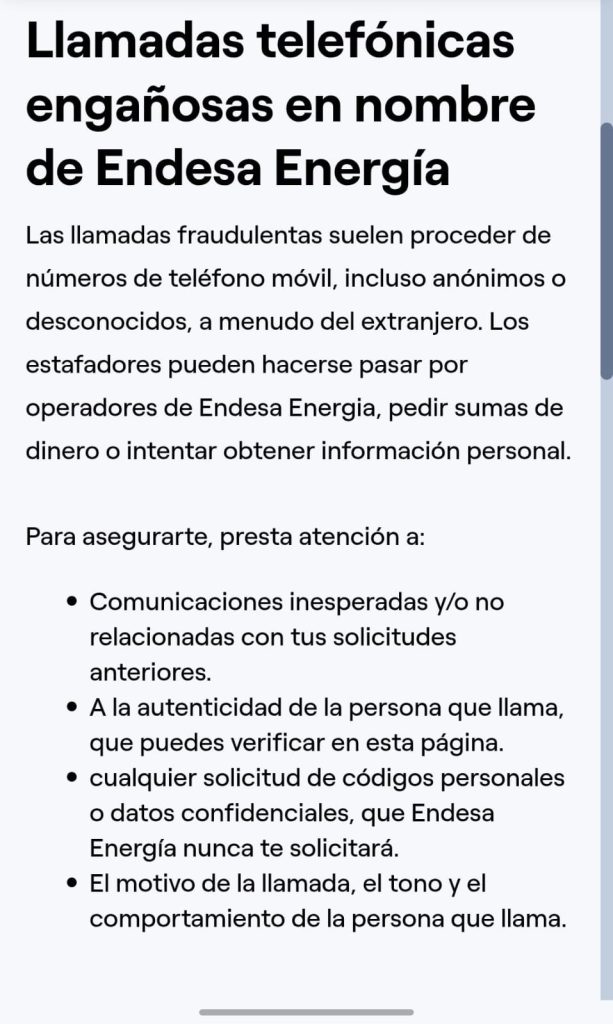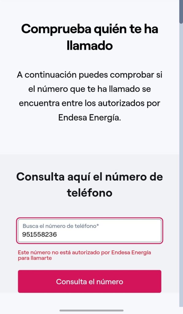En el caso de los clientes de Endesa, pueden acceder a su panel de usuario para consultar si el número de teléfono desde el que han recibido la llamada corresponde con uno de los que la compañía tiene autorizados para hacer comunicaciones.